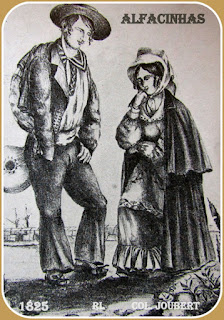 Gente de Lisboa - (1825) Desenho de Jorge de Bekerster Joubert  - (Um marinheiro despede-de de uma alfacinha de capote e lenço, inserido no livro de Alberto Souza, uma colecção de JOUBERT) in ALFACINHAS - Pág. 76