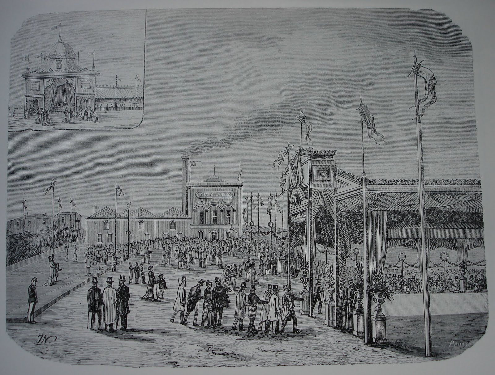 Rua do Cais de Santarém - (1900)-(Lisboa de 1850 a 1974) Foto de autor não identificado (Final do "Campo das Cebolas" e início da "Rua do Cais de Santarém", no lado esquerdo o Brasão de armas dos "MASCARENHAS" e o "Palácio dos Condes de COCULIN" bastante alterado) in RECORDAR O PASSADO(CONTINUAÇÃO)